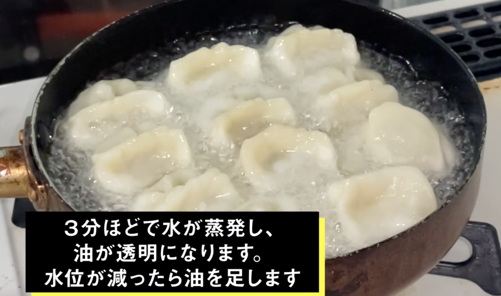 目安は、また 餃子が8〜9割浸かるくらい になるように足してあげると安心です!